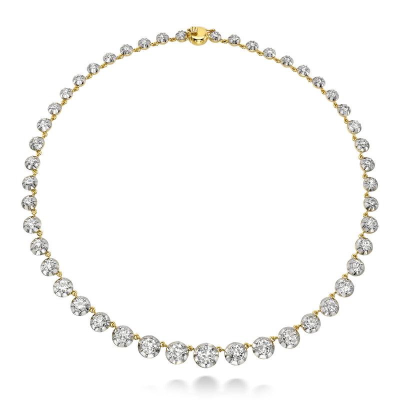 Coady Culha Original named after our dear friends Cynthia & Miles Clement. This design features a continuous line of long baguettes weighing 7.34ct total set in 18k Yellow Gold.